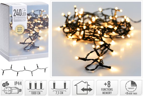 Valguskett 240 LED ekstra soe valge 8 funktsiooni ja taimeriga